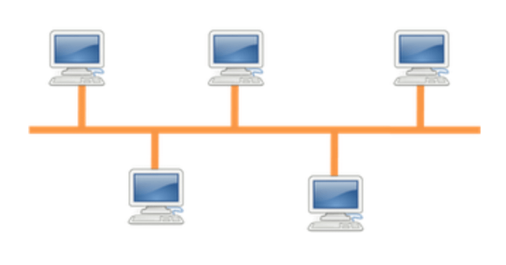 Es una topología de red en donde se todos los nodos están conectados directamente con un enlace y no hay ningún otro tipo de conexión entre los nodos. De manera física, cada host está conectado a un cable común, así que se pueden comunicar directamente, pero la ruptura de este cable hace que los host queden desconectados.