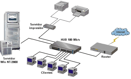 Es un tipo de topología en donde hay un nodo central a partir del cual se irradian los demás enlaces hacia los otros nodos. Es por el nodo central, casi siempre ocupado por un hub, en donde la información que circula por la red pasa. Esta red no presenta ningún tipo de interconexión entre las computadoras ya que toda la información pasa por el nodo central